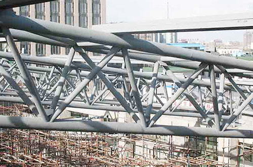 2、在吊装钢梁时还需要对砼进行复核,此时一般采用葫芦钢丝绳缆索进行检查,待大梁安装完后可松开缆索。对钢梁屋脊线也必须控制。使屋架与柱两端中心线等值偏差,这样各跨钢屋架均在同一中心线上。